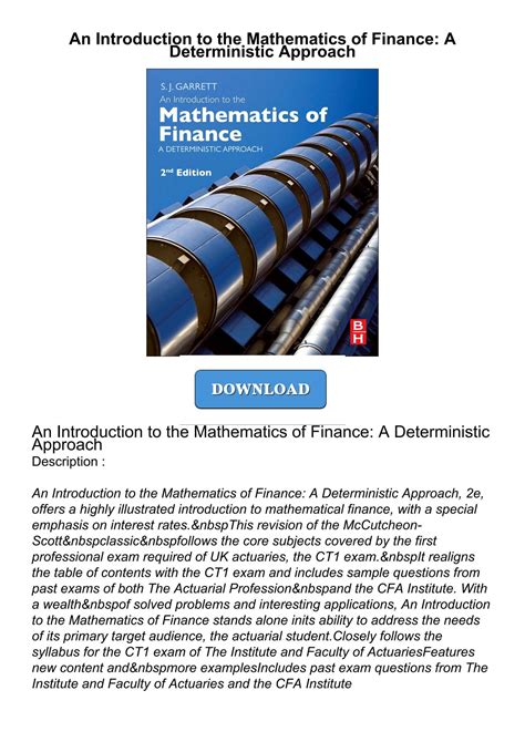 Download An Introduction to the Mathematics of Finance: A Deterministic Approach mobipocket BookBoon